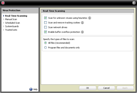 K plnému využití programu doporučuji zapnout tzv. Advanced Menu. Zobrazí se vám pak všechny funkce programu. Jakmile se pustíte do kontroly počítače, nabídne vám McAfee Security Center výběr položek ke kontrole a nastavení této kontroly. Heuristika je standardně zapnuta, stejně jako procházení archivů ZIP a vyhledávání spywaru. McAfee Security Center si poradí také s poslední dobou stále častěji zmiňovanými rookity. Vypnuto je naopak odstraňování sledovacích cookies.