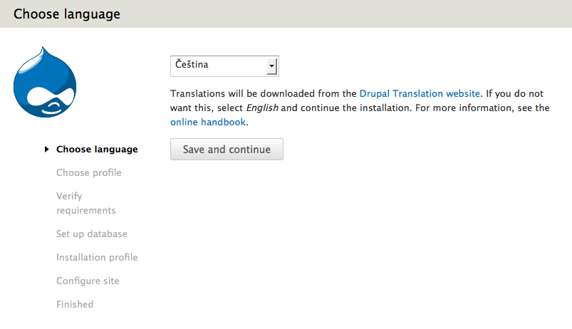 Ruční nakopírování češtiny před instalací, nebo následné doplnění modulu Localization Update už nemusíte řešit. Drupal 8 si překlad a tedy i češtinu stáhne hned při instalaci:
