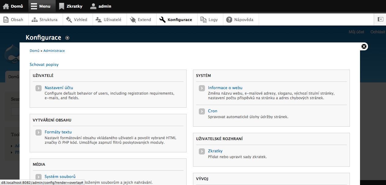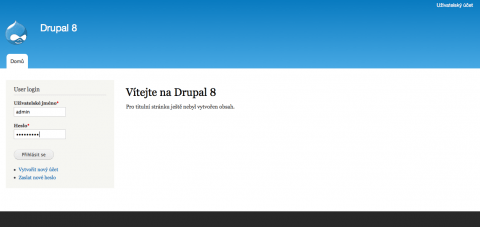 Drupal 8 po přihlášení: