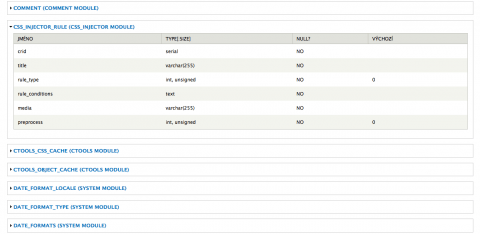 Porovnání struktury tabulek v databázi s definicemi modulů v Drupalu