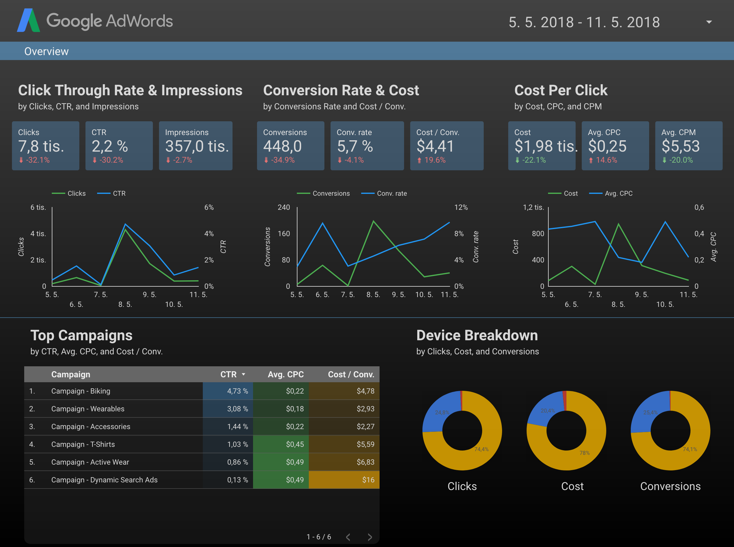 Jestli mi něco vadilo v Google Analytics, tak že si tam nemůžete jednoduše vybrat konkrétních pár metrik a zobrazit je třeba v několika grafech pod sebou, každý by přitom byl pro jiný web.