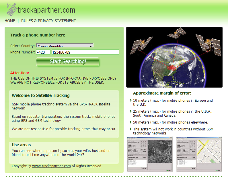 Mimochodem, tahle stránka / vtip je velice starý, divím se, že jste se s tím ještě nesetkal. Tak pro příště, lokalizovat mobilní telefon jen tak nejde, protože to by signál nesměl jít přes vysílače operátora toho daného mobilu, jedině policie může za jistých okolností hovor zaměřit.