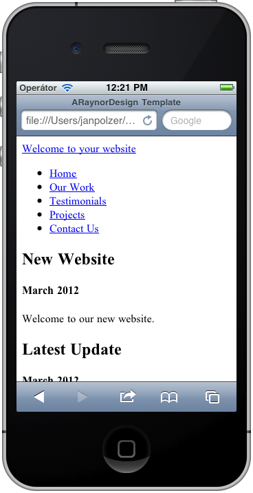 V tuto chvíli máme připraveno vše potřebné k tomu, aby se nám v iPhone otevřelo mobilní zobrazení webové stránky. Do složky css si v šabloně přidejte nový soubor pojmenovaný mobile.css (viz definice CSS v hlavičce výše).