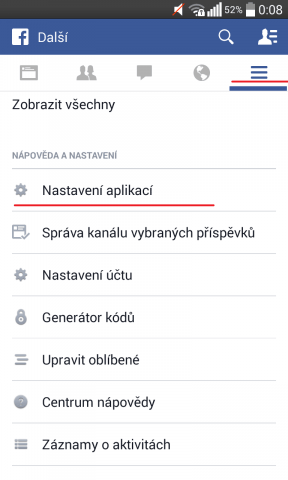 Aplikace FB pro Android má také standardně nastavené automatické přehrávání videí. Naštěstí pouze pro připojení přes Wi-Fi, ale třeba na tabletu můžete mít přijímat signál z hotspotu, kterým je váš mobil, a není těžké domyslet, jak rychle by mohl váš limit FUP zmizet. Autoplay je však nejvíc ze všeho otravný, proto lze vypnout, když půjdete do Nastavení (tři vodorovné čáry pod sebou).