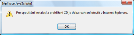CD má samospouštěcí ovládací program, který má jednu drobnou chybu. Jak to dopadne po vložení do počítače s Windows Vista, vidíte na následujícím obrázku.