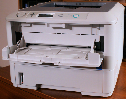 Jak jsem již zmínil, bez počítače si s tiskárnou prakticky neužijete. Displej je téměř bez ovládacích prvků. Co se týče vkládání papíru, využijete buď poměrně velký spodní zásobník na 250 listů (s přítlakem z boků a ze zadní strany), nebo horní podavač na obálky a jiné malé formáty. Podavače jsou spolehlivé a přesné, proto tiskárnu využijete například i pro potisk formulářů.