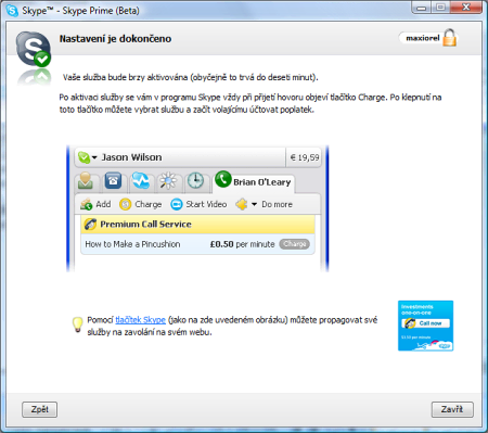 Nyní je již vše připraveno a můžete začít svou činnost se Skype Prime: