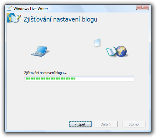 Windows Live Writer provede analýzu současného stavu vašeho blogu, stáhne si soubory potřebné k tomu, aby vám v editoru nabídl odpovídající vzhled textu stejně, jako se objeví na webu (čili stáhne si potřebné kaskádové styly z webu) a nakonec vás požádá o zadání názvu vašeho blogu. To pro případ, že časem budete chtít publikovat na více blogů.